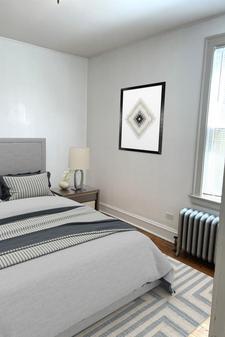 Beautiful 1920's era two-flat. First floor apartment has three bedrooms, one and a half baths, central air conditioning and in-unit laundry. Second floor apartment is three bedrooms, one bath, window A/C and basement laundry. Both are light and airy with lots of windows, remodeled kitchens and baths and oak floors. Basement storage is included. Walk-to-everything location: one block to Noyes St. shopping and the CTA, four blocks to Northwestern University. Easy, residents’ only street parking. May be rented as a 3 bedroom or 6 bedroom.